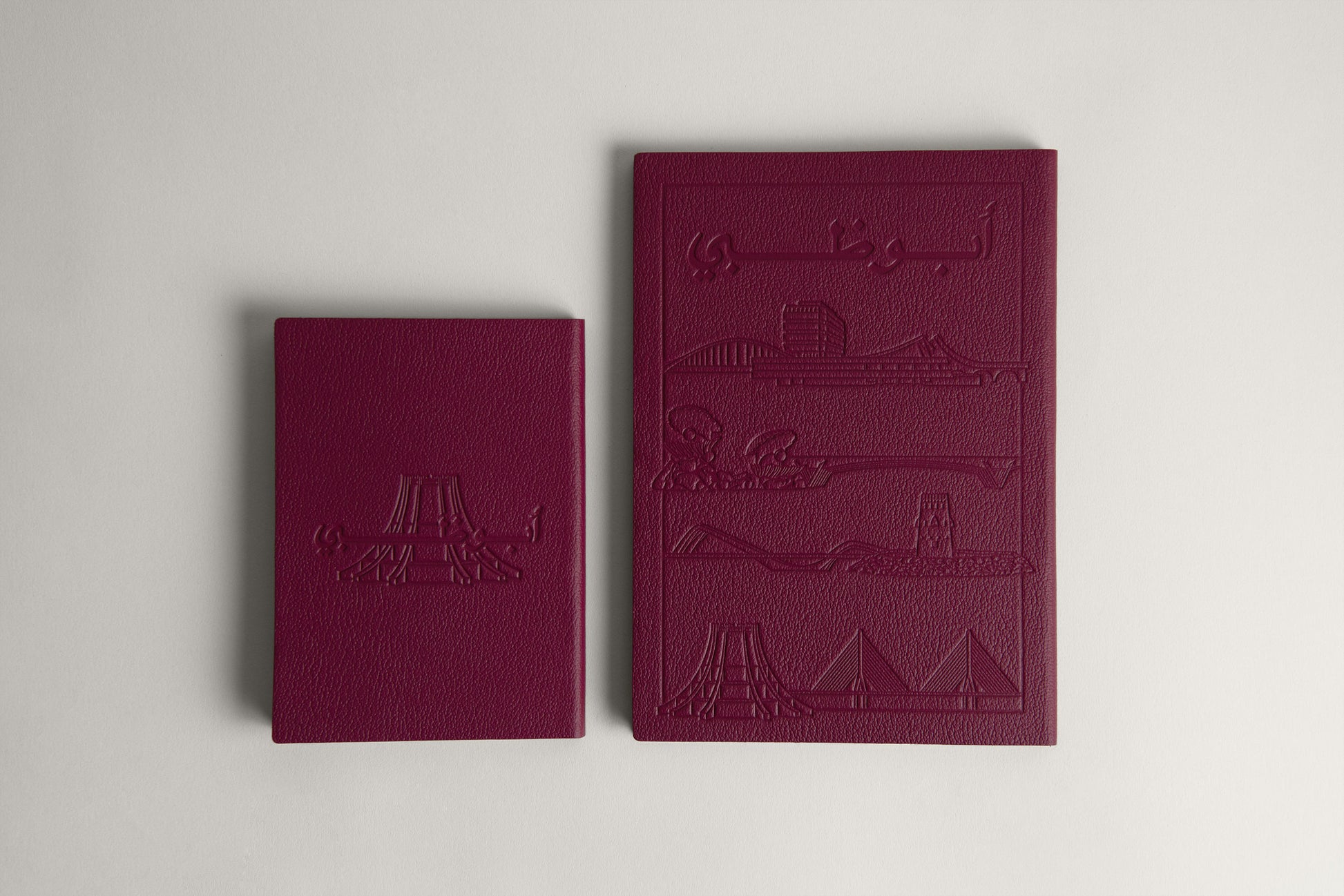 This set includes two camel leather notebooks with soft covers, featuring lined A5 and blank A6 pages for capturing everyday inspirations, thoughts, and sketches. The perfect binding spine ensures comfortable writing and convenient use. The embossed design features nostalgic and historical landmarks found in the UAE’s capital, Abu Dhabi.