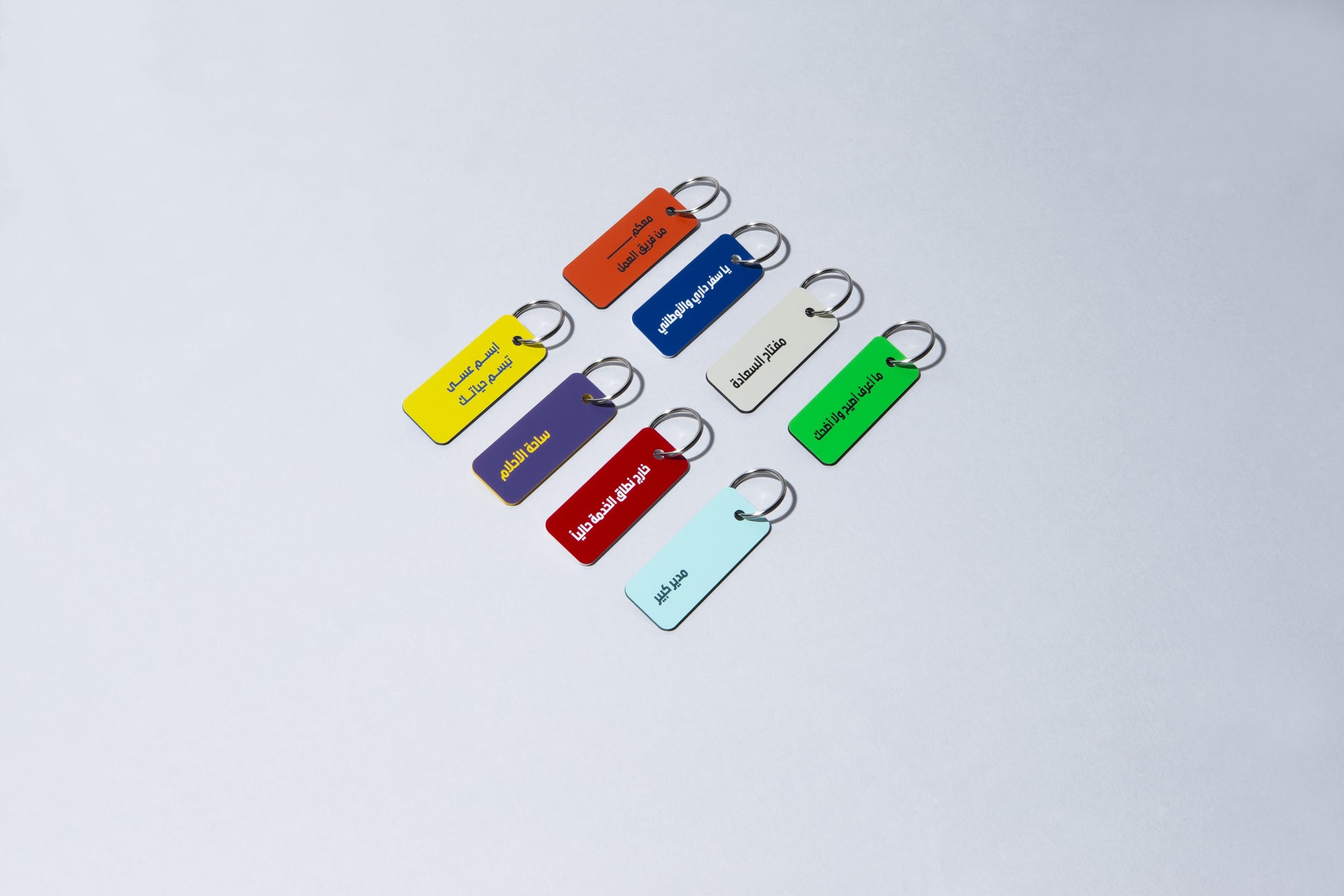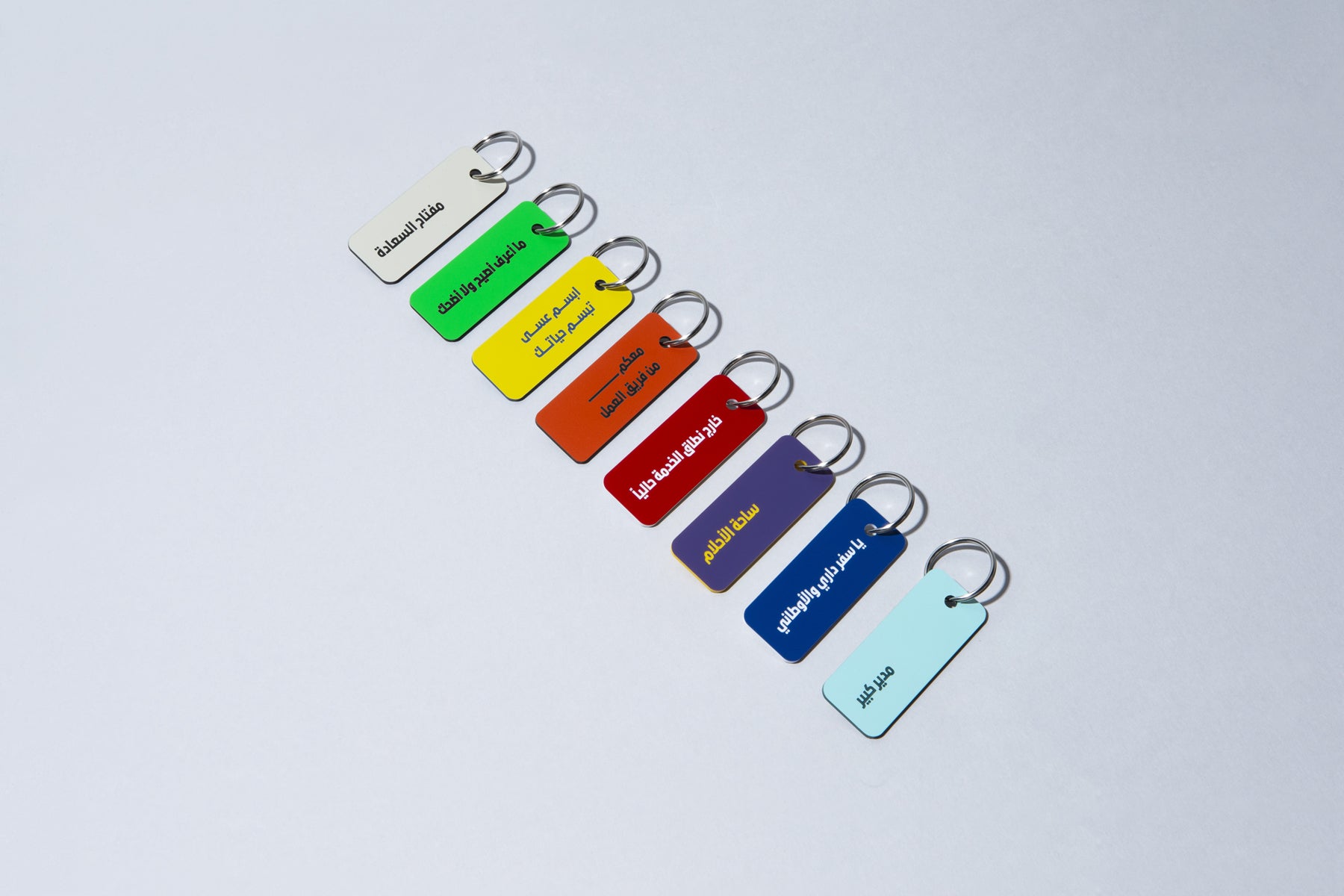 These custom keytags are made in collaboration with 'Various Keytags' to add an Arabic twist to their signature design. The keytags feature 8 different phrases.