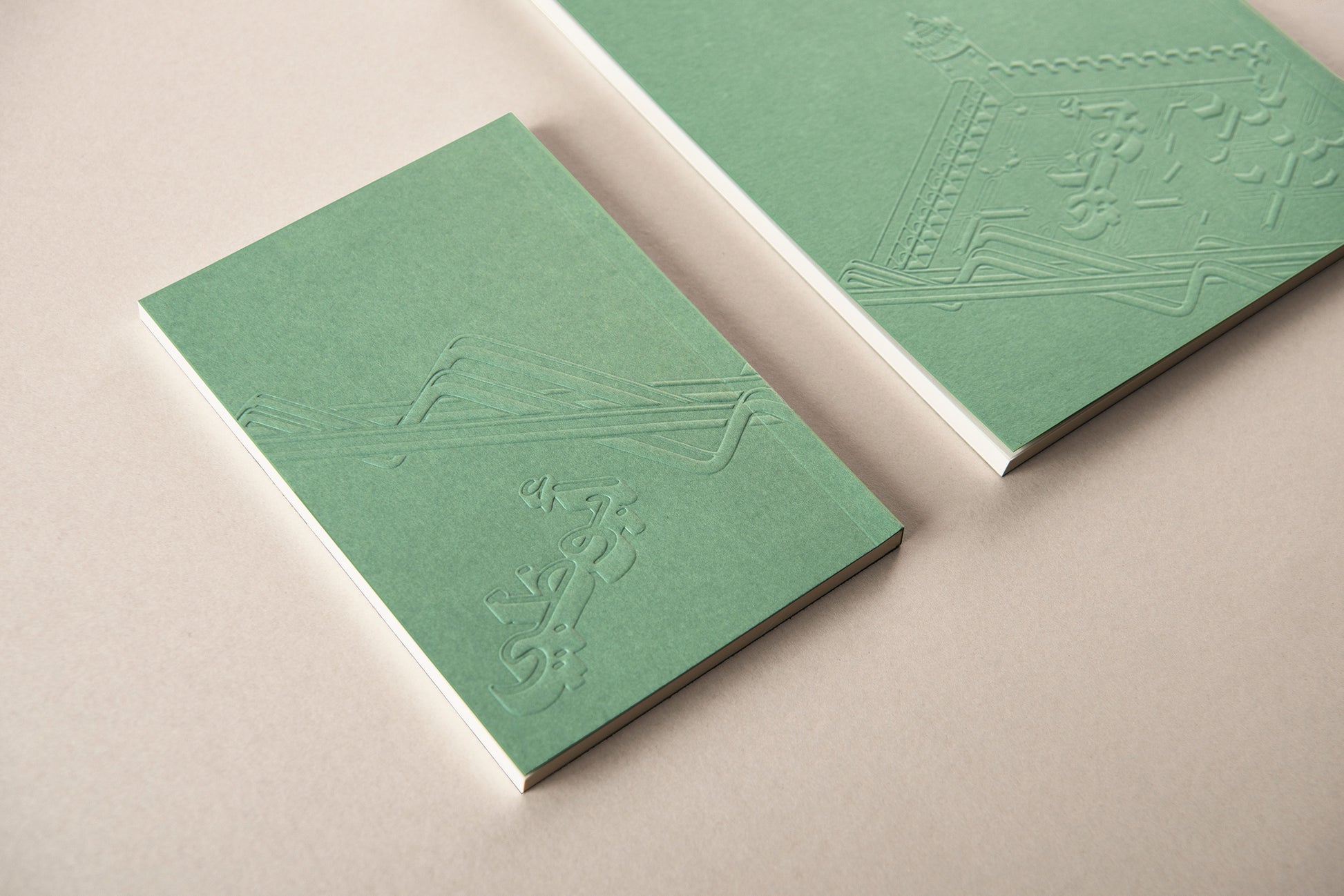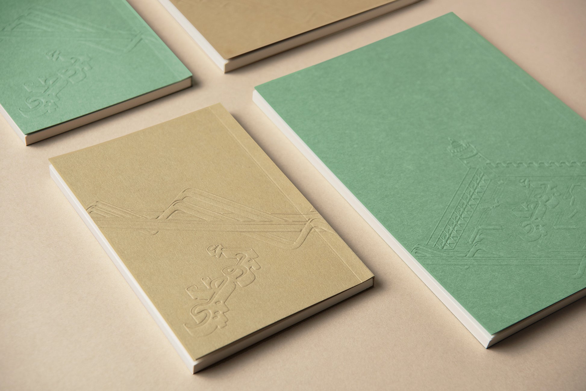 A set of two paper notebooks with soft covers and blank pages for everyday inspirations, thoughts and sketches. Perfect binding spine allows for comfortable writing and convenient use. Embossed design features architectural and historical landmarks from the UAE’s capital, Abu Dhabi.